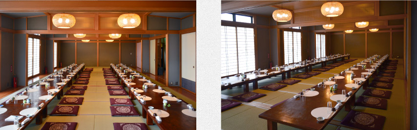 また、大広間は四部屋に仕切る事が出来ますので、人数に合わせてセッティングさせて頂きます。